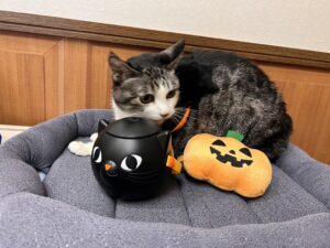 楽しんでほしいと思いコウモリの羽やおもちゃをあげてみました🎃