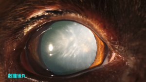 これは点眼で進行を遅らせることはできても手術をしない限り、透明に戻ることはありません。