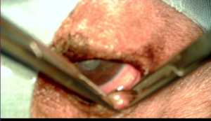 摘出した腫瘤を検査機関に提出したところ結果は、眼瞼付属腺由来の良性腫瘍性病変(マイボーム腺腫)が認められました。