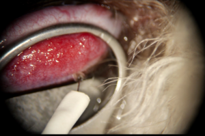 逆さまつげが原因で目を擦ってしまい、角膜に傷ができてしまった為、