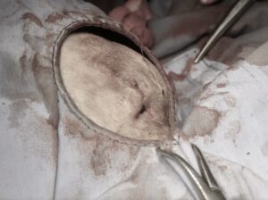 腫瘤があるとのことで今回外科手術を行いました。